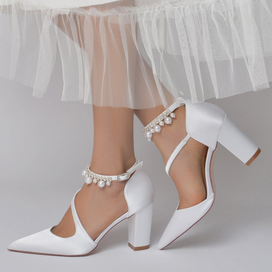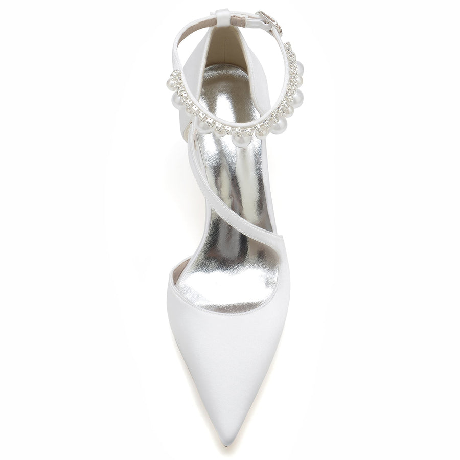 Damen Seidensatin mit Knöchelriemen Perlenquaste Geschlossene Zehenpartie Blockabsatz Partyschuhe