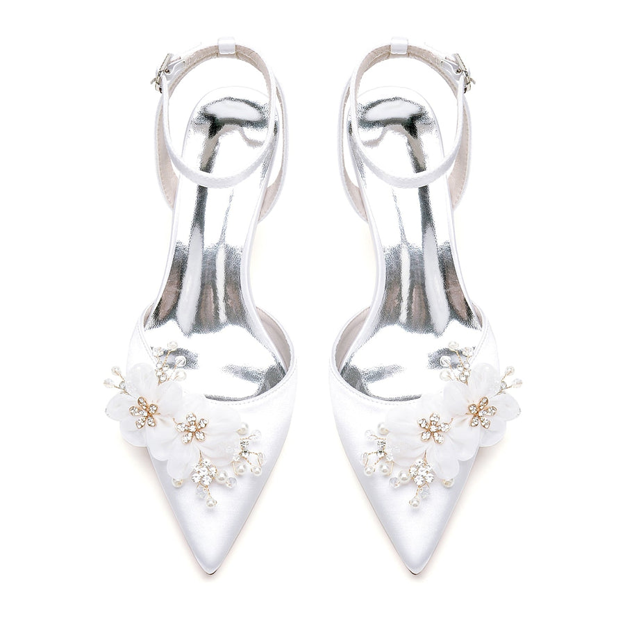 Damen Seidensatin mit Blume Geschlossene Zehenpartie Knöchelriemen Stilettoabsatz Partyschuhe