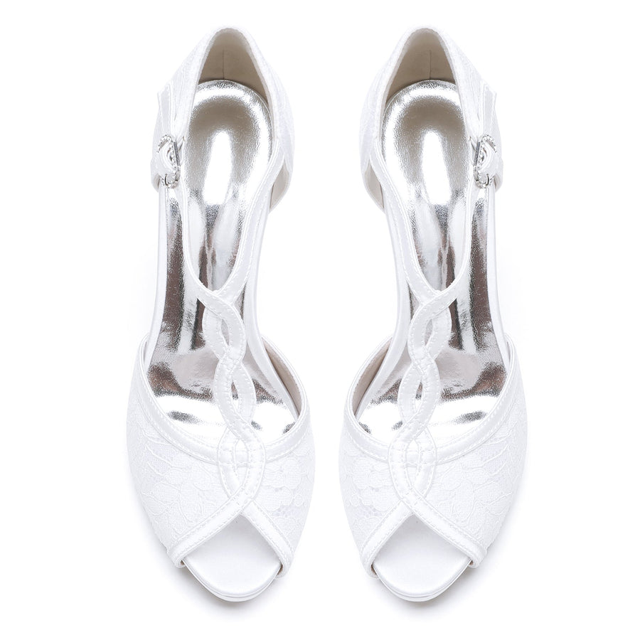 Damen Spitze Mit Knöchelriemen Spitze Peep Toe Stiletto Absatz Abendschuhe